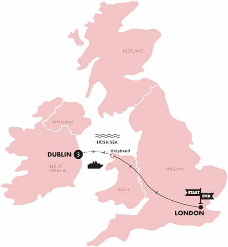 Today you can unite with the team by morning in London or by afternoon in Dublin. We'll waste no time getting into the Irish spirit, with a night of shenanigans on the town sitting ahead of us in the capital.